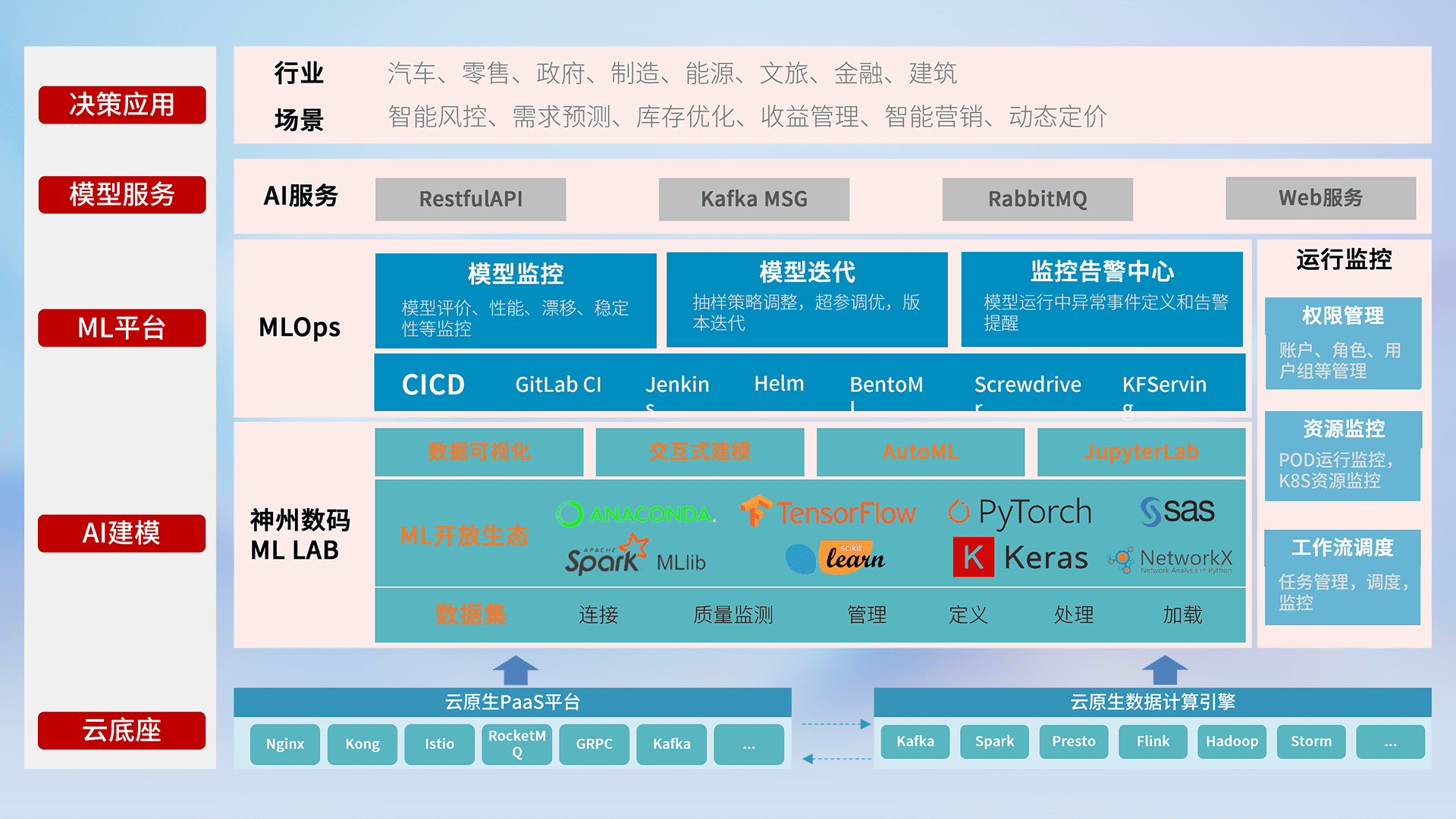 数据+模型双引擎驱动,,,,面向智能服务场景,,快速灵活利用AI技术,,支持业务决策,,,,助力企业智能化转型破局。。。